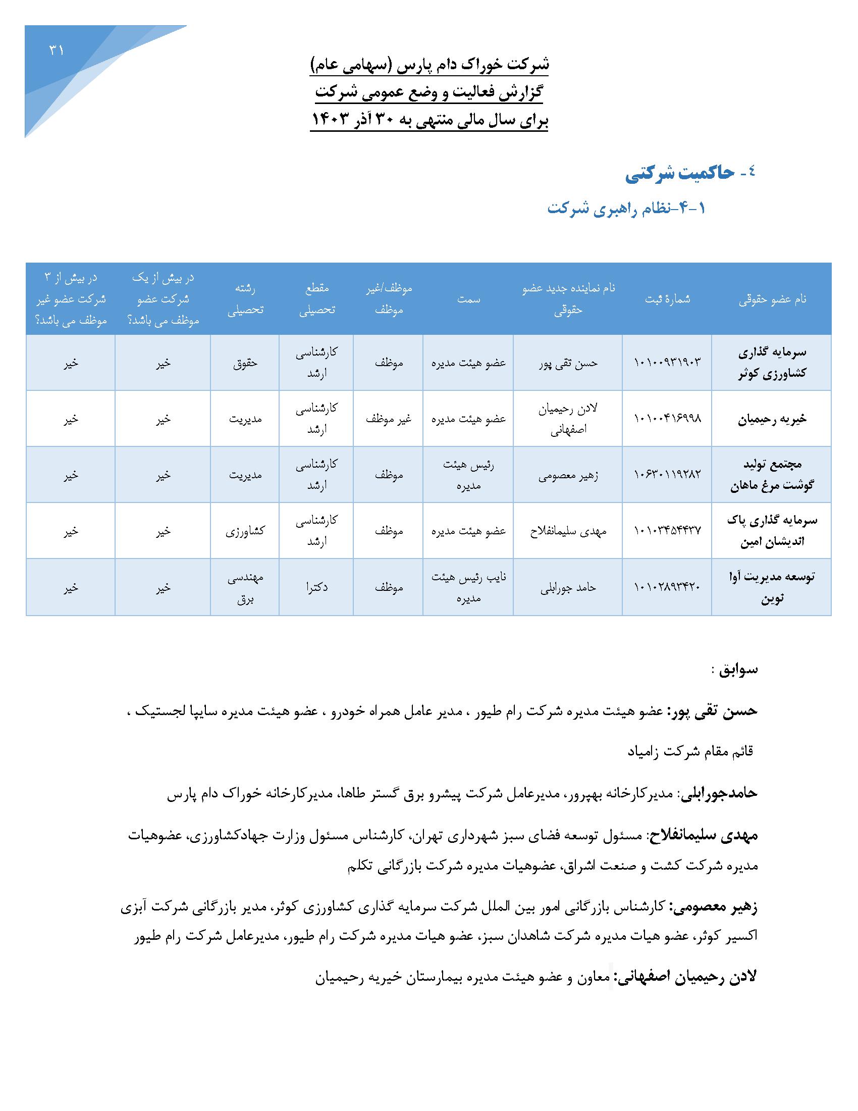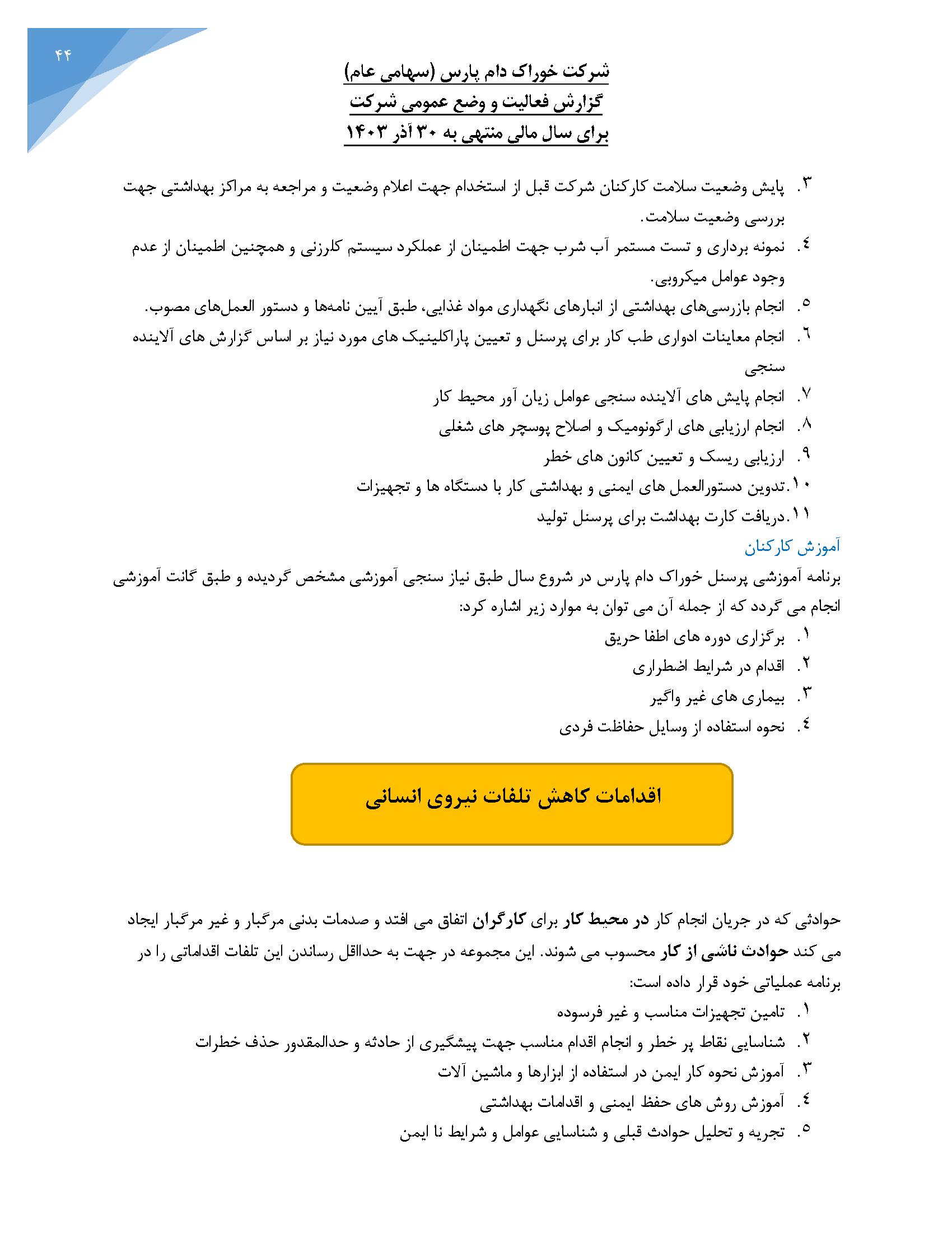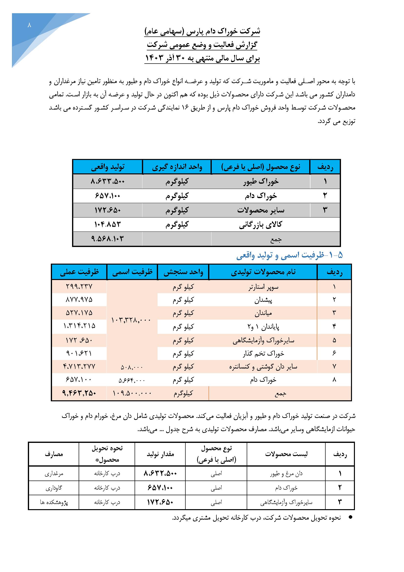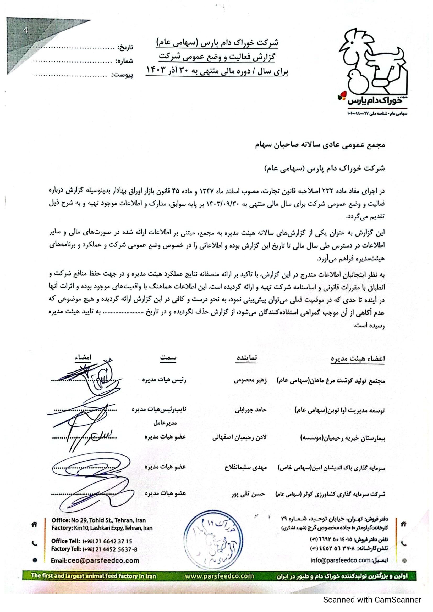 گزارش سالانه هیئت مدیره به مجمع عمومی عادی سالیانه سال مالی منتهی به 1403/09/30