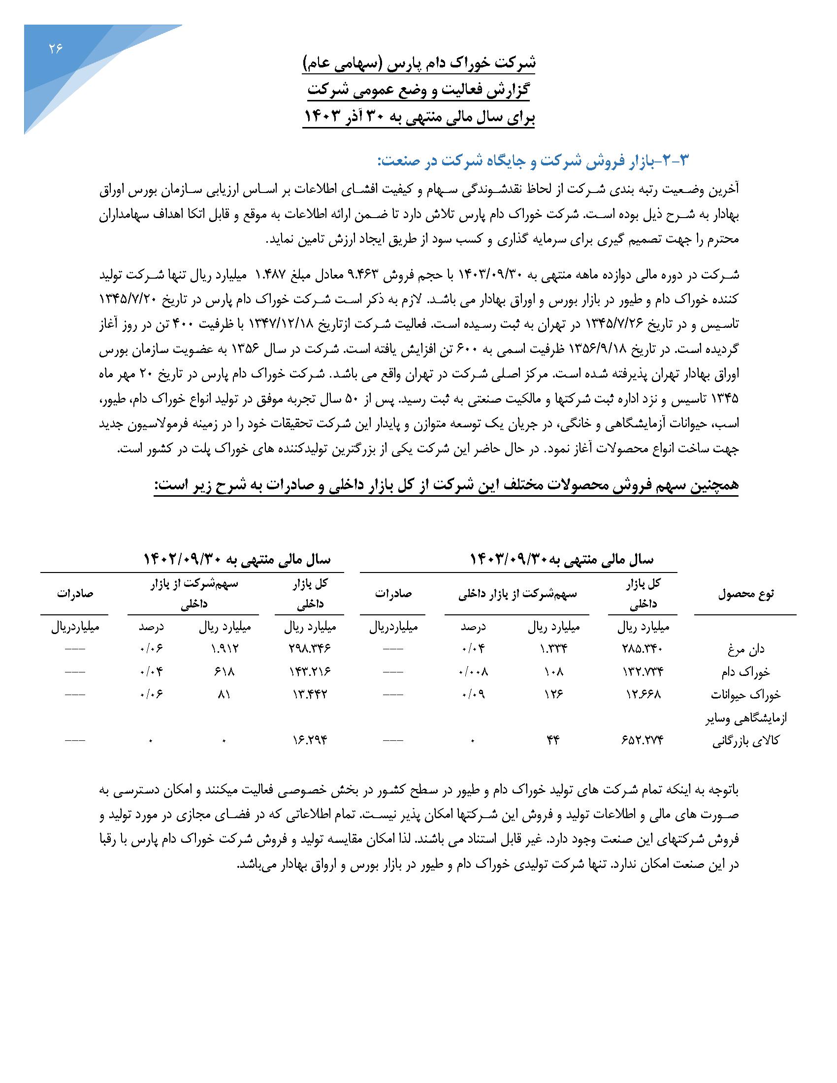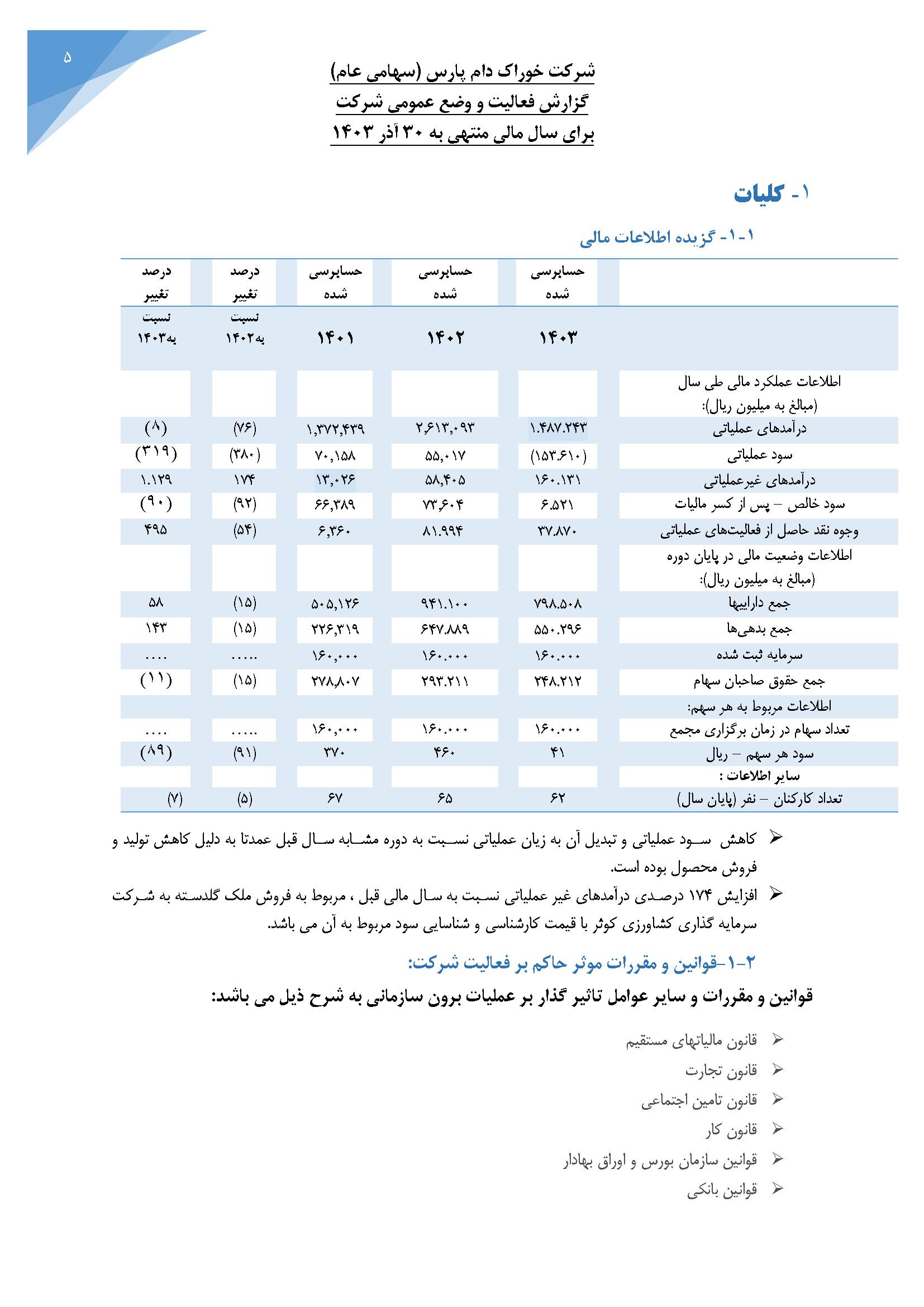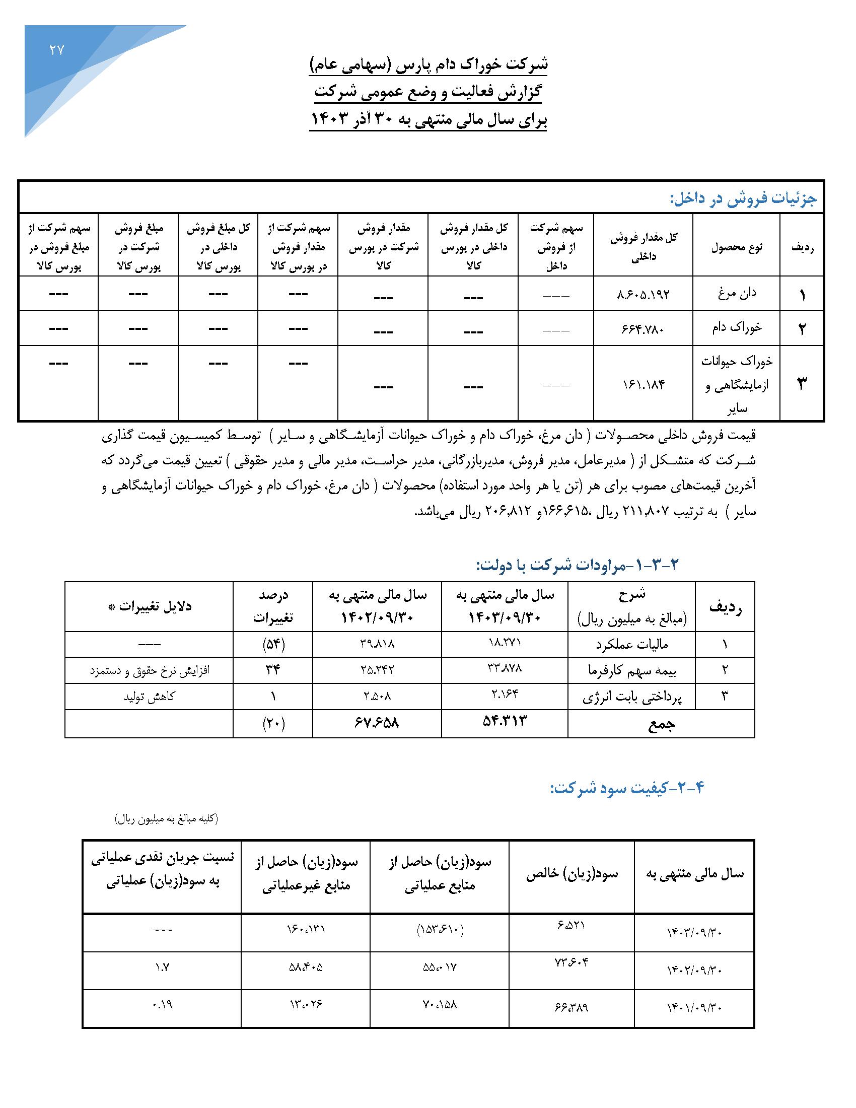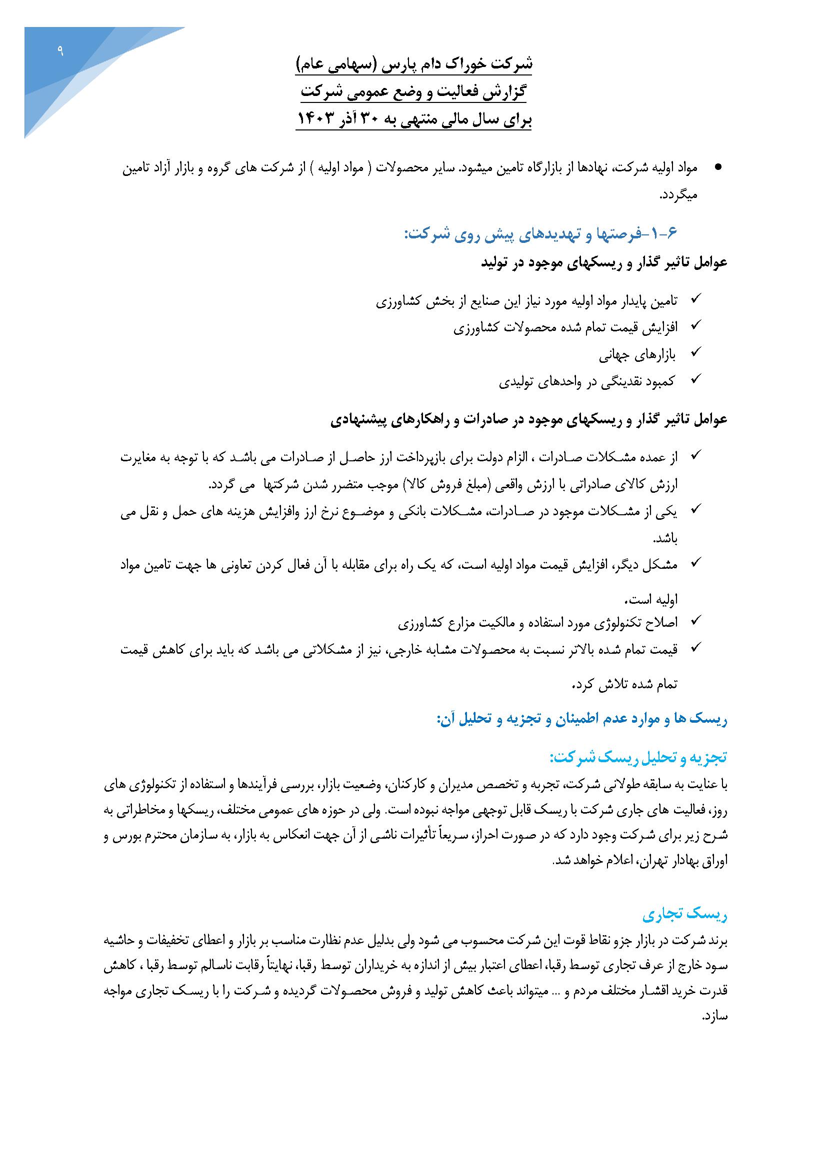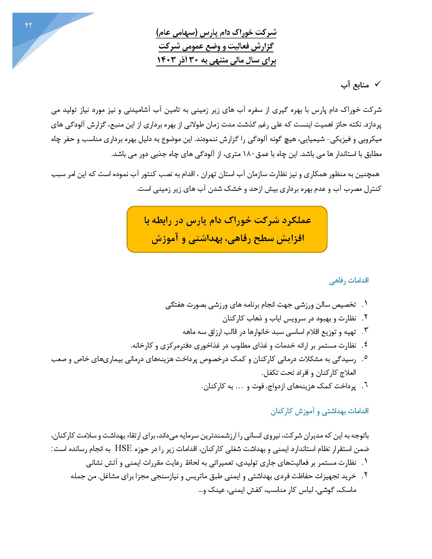 گزارش سالانه هیئت مدیره به مجمع عمومی عادی سالیانه سال مالی منتهی به 1403/09/30