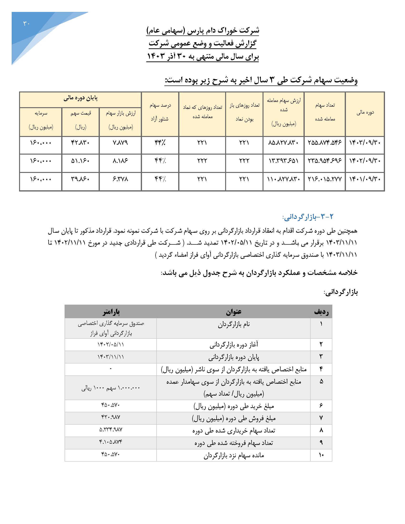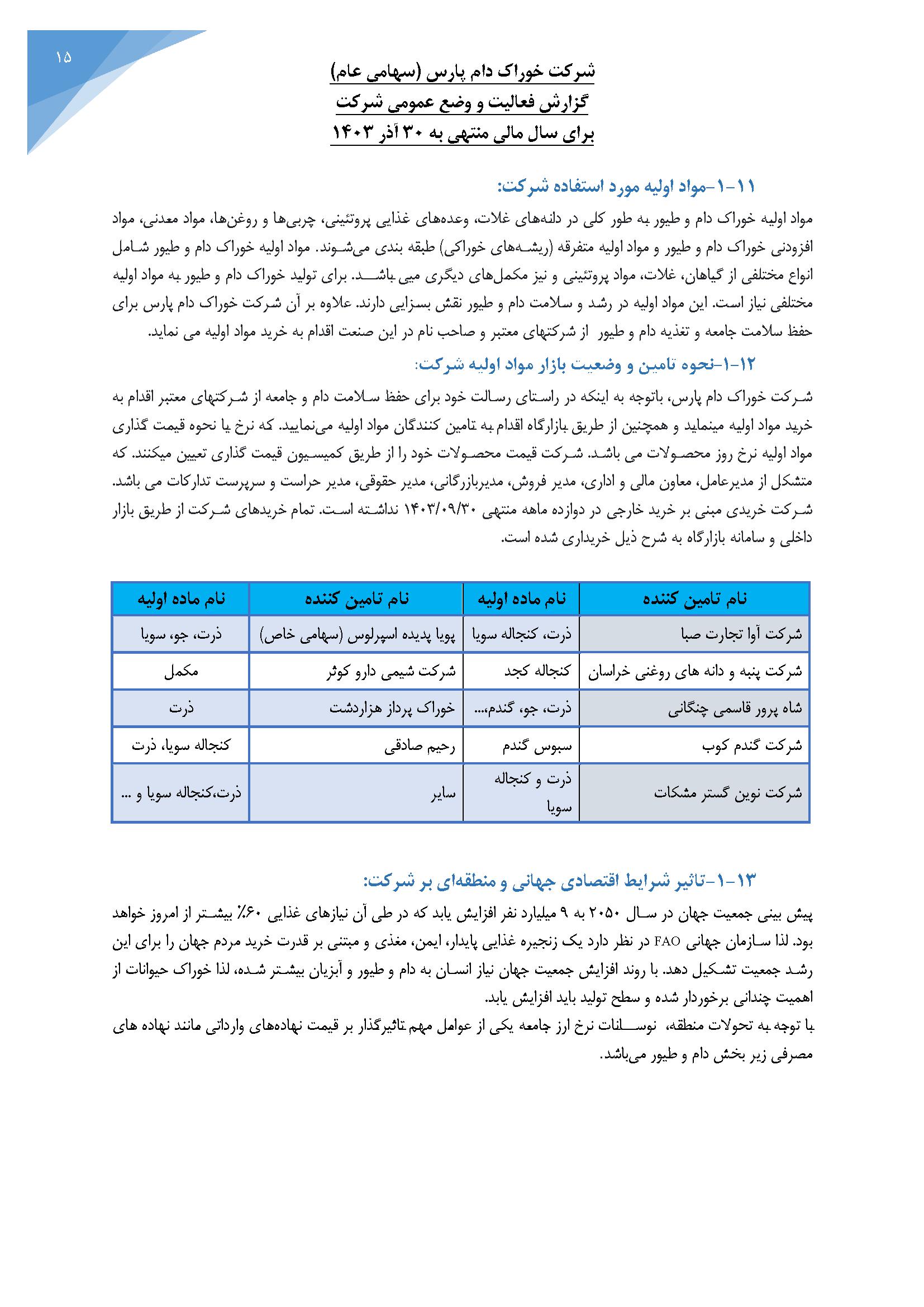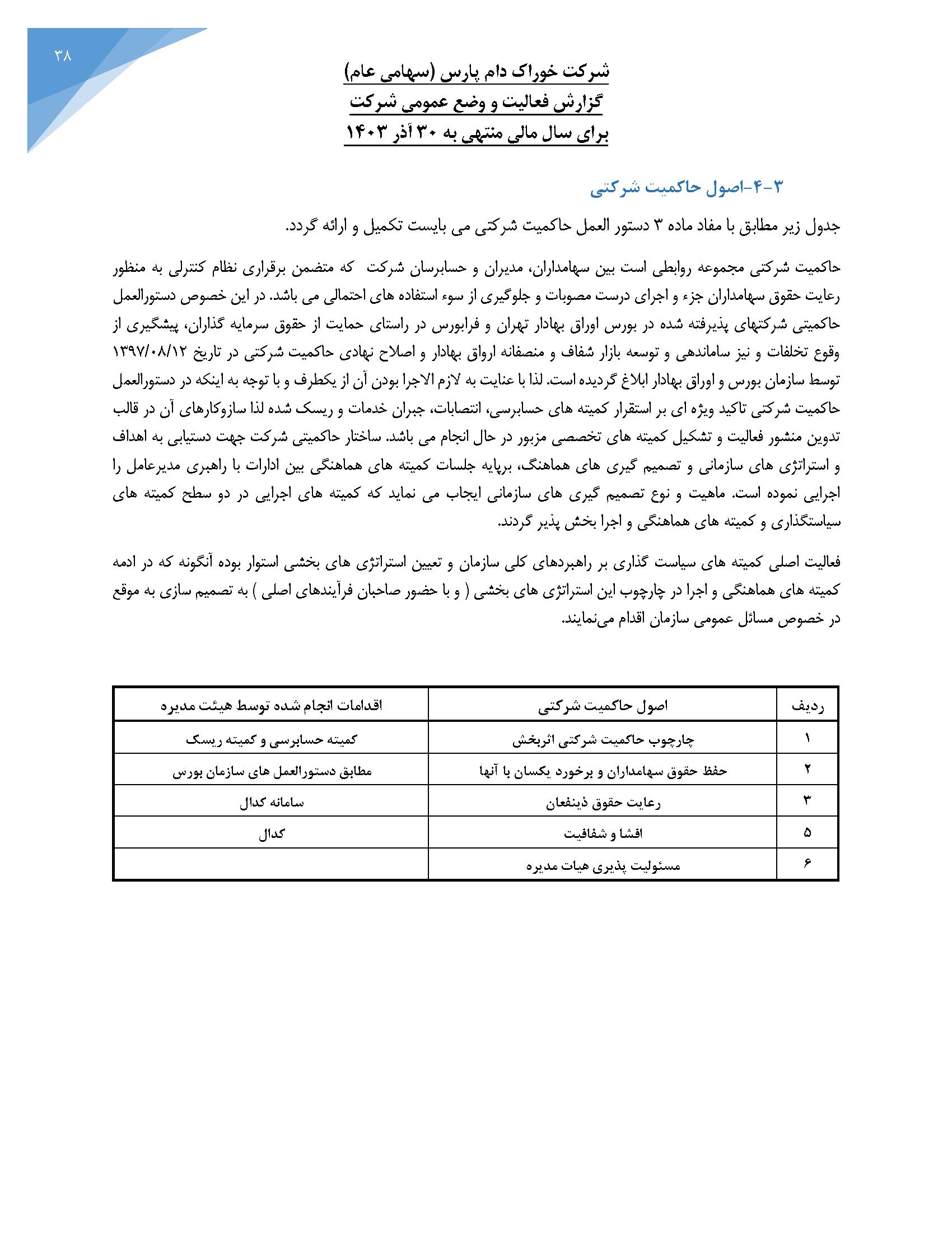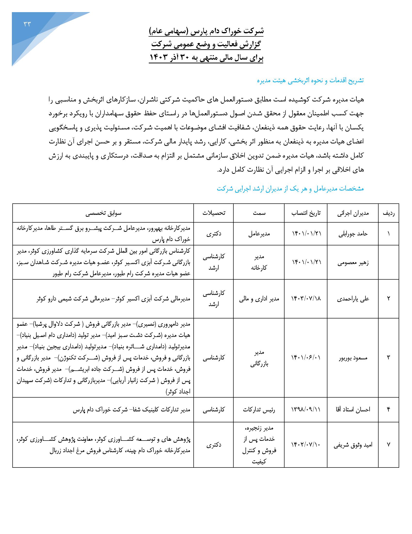 گزارش سالانه هیئت مدیره به مجمع عمومی عادی سالیانه سال مالی منتهی به 1403/09/30