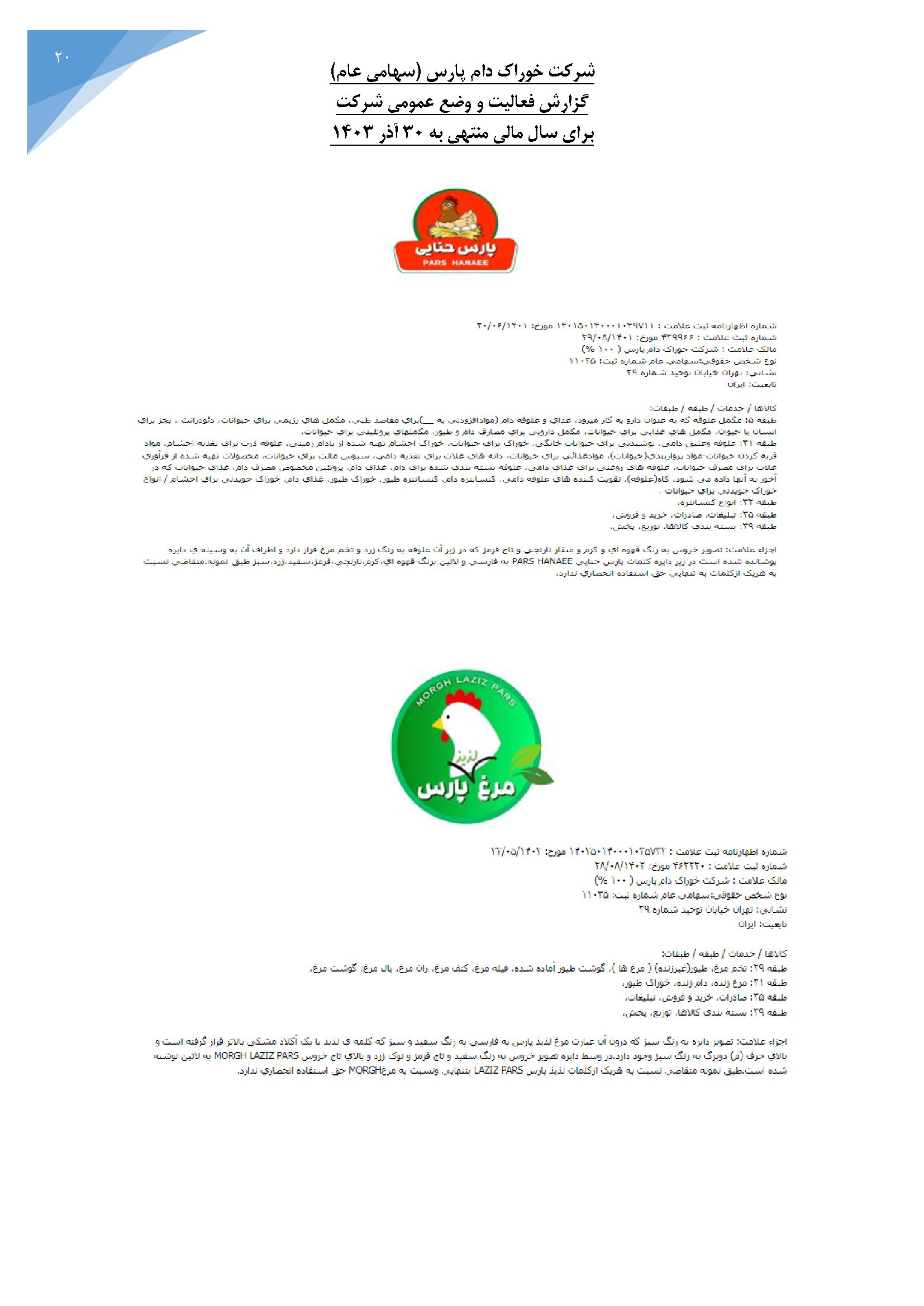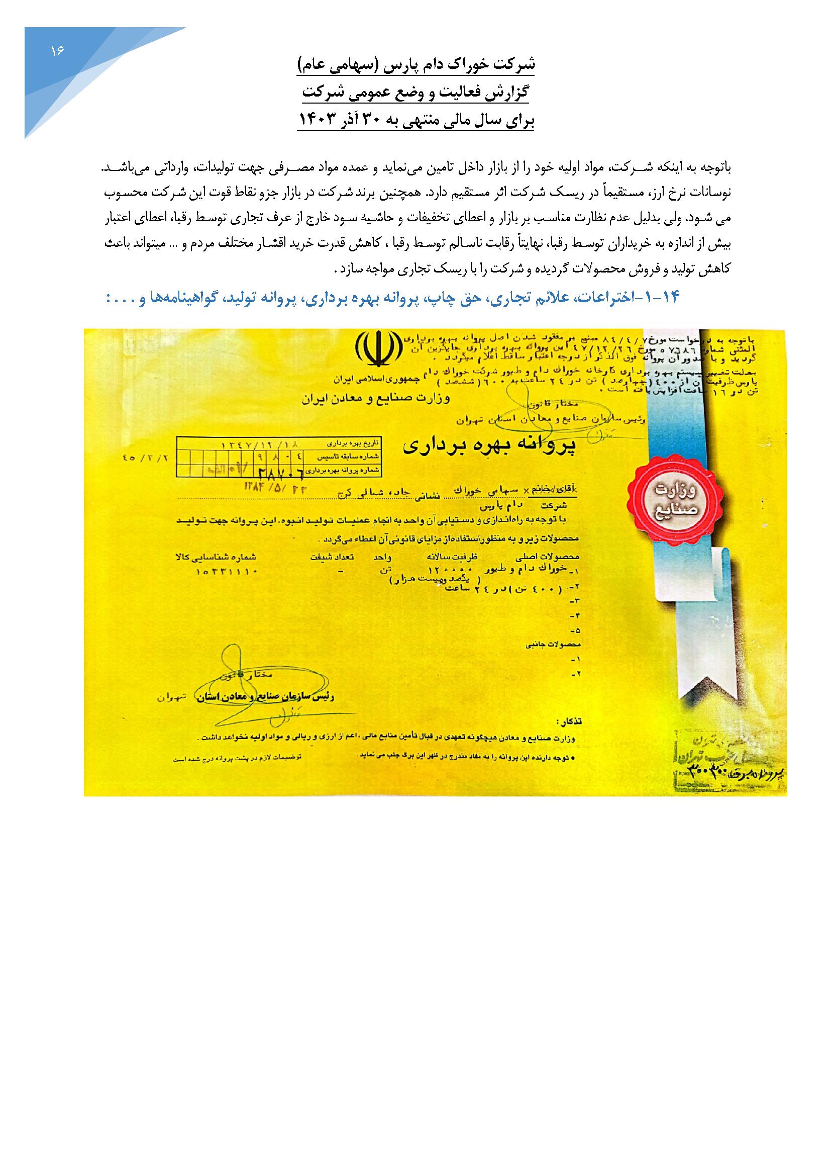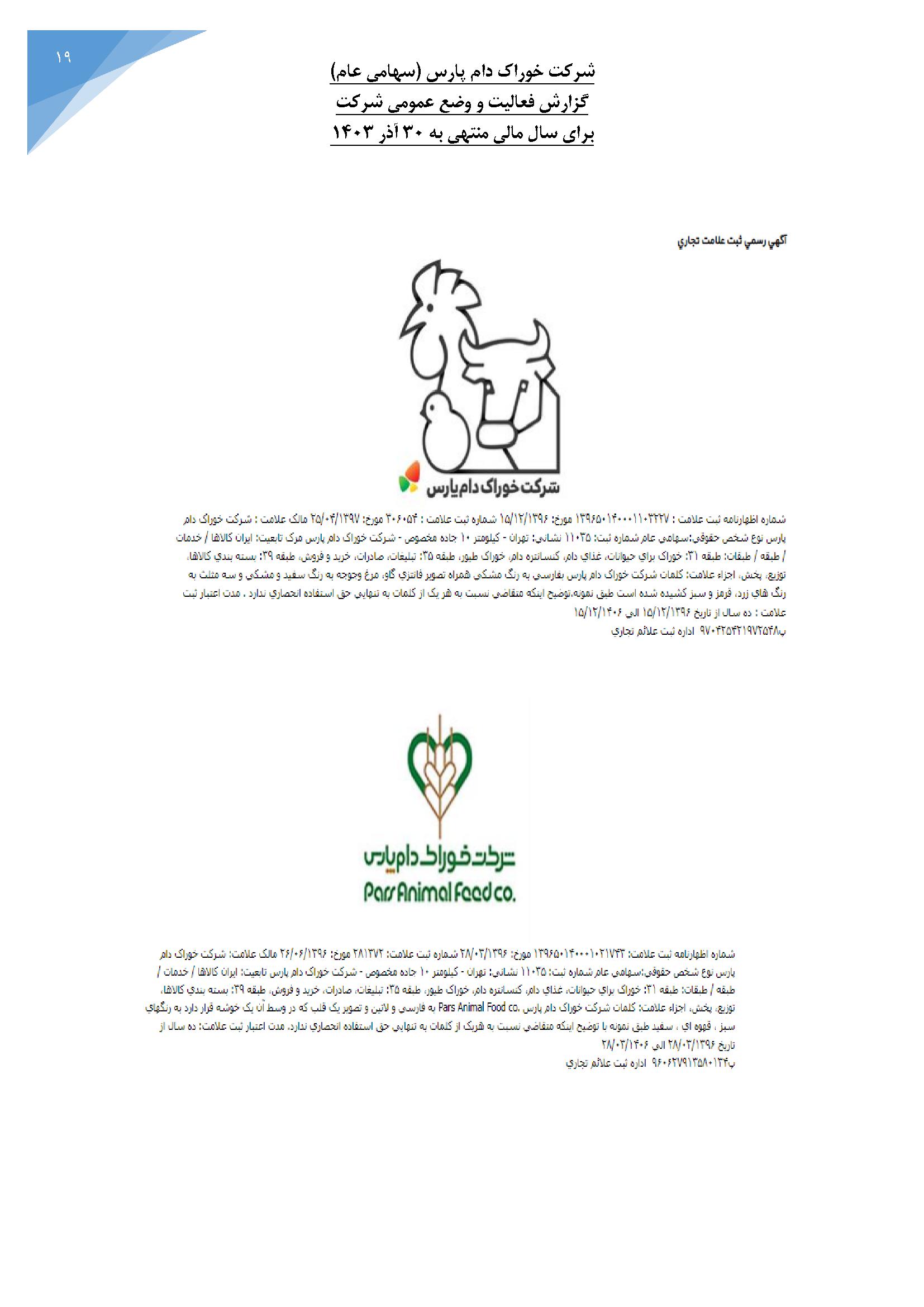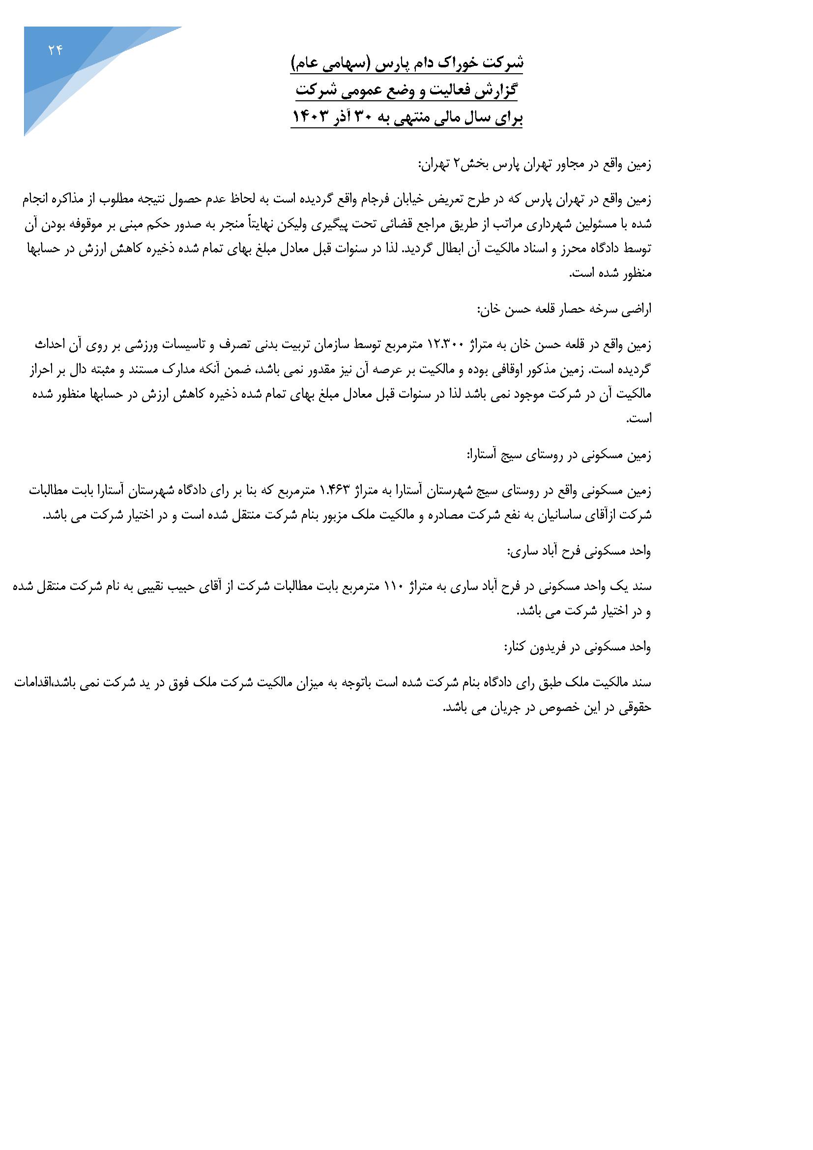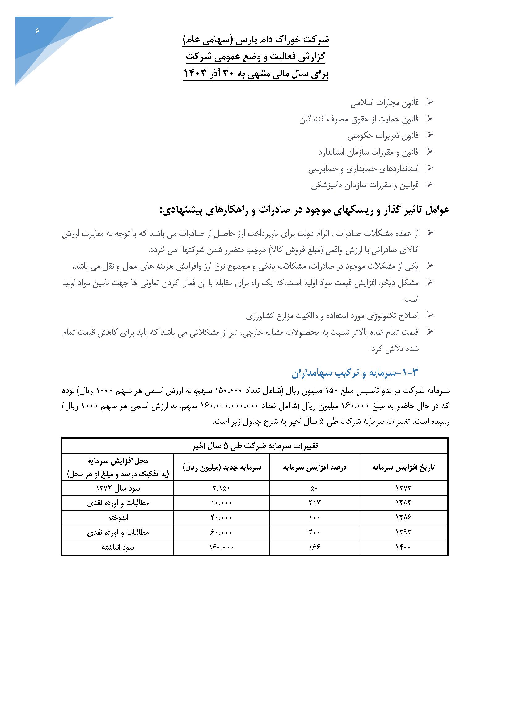 گزارش سالانه هیئت مدیره به مجمع عمومی عادی سالیانه سال مالی منتهی به 1403/09/30